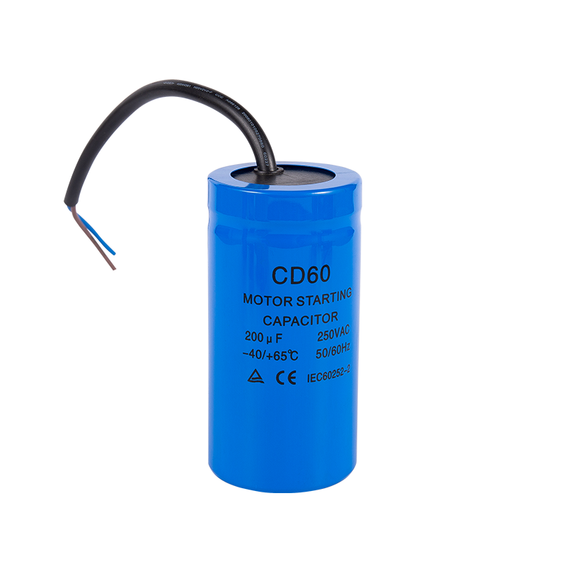 Il condensatore di avviamento CD60 viene principalmente utilizzato per l'avvio del motore ad alta coppia, come compressori di aria condizionata e congelatore, pompe per l'acqua o altri sistemi di alimentazione monofase e motori asincroni e motori asincroni trifase utilizzano alimentazione a fase monofase.